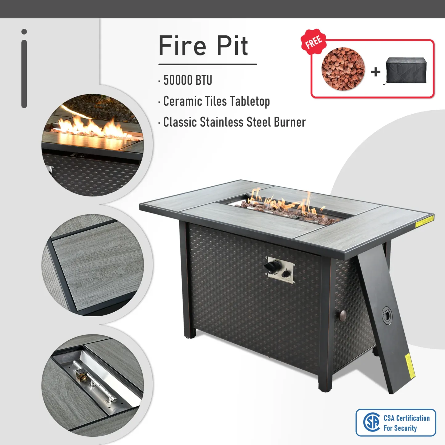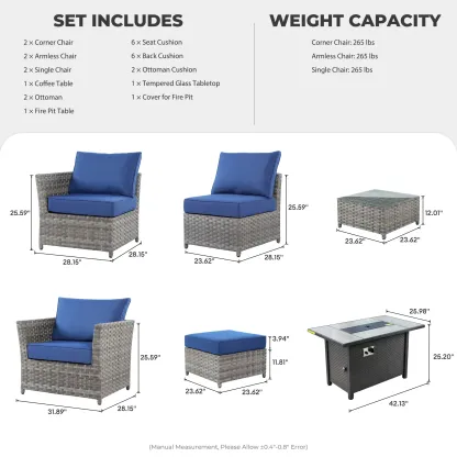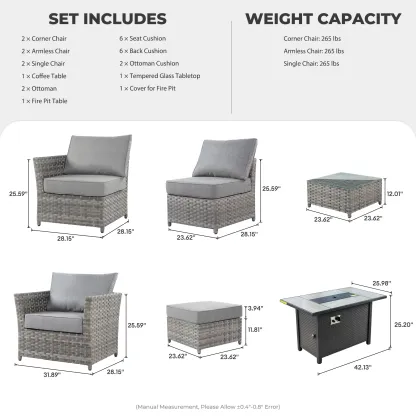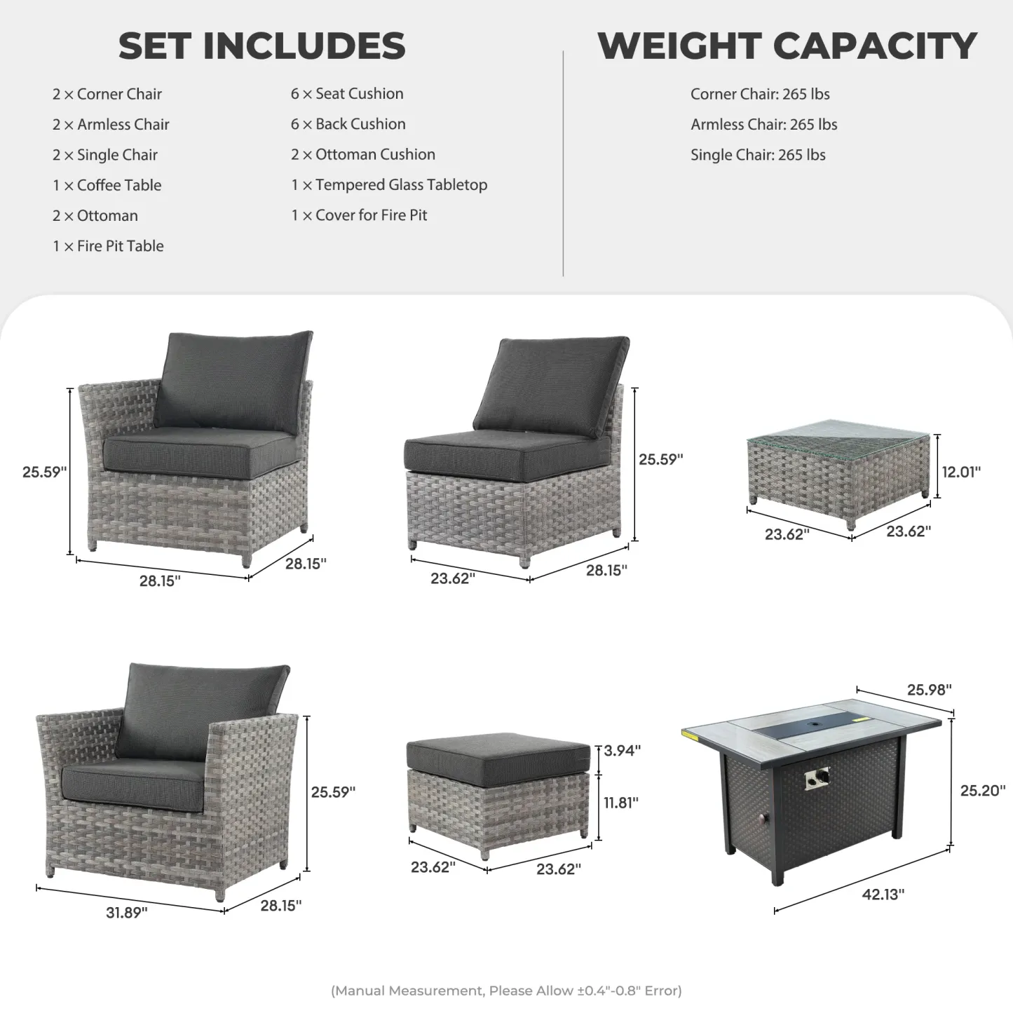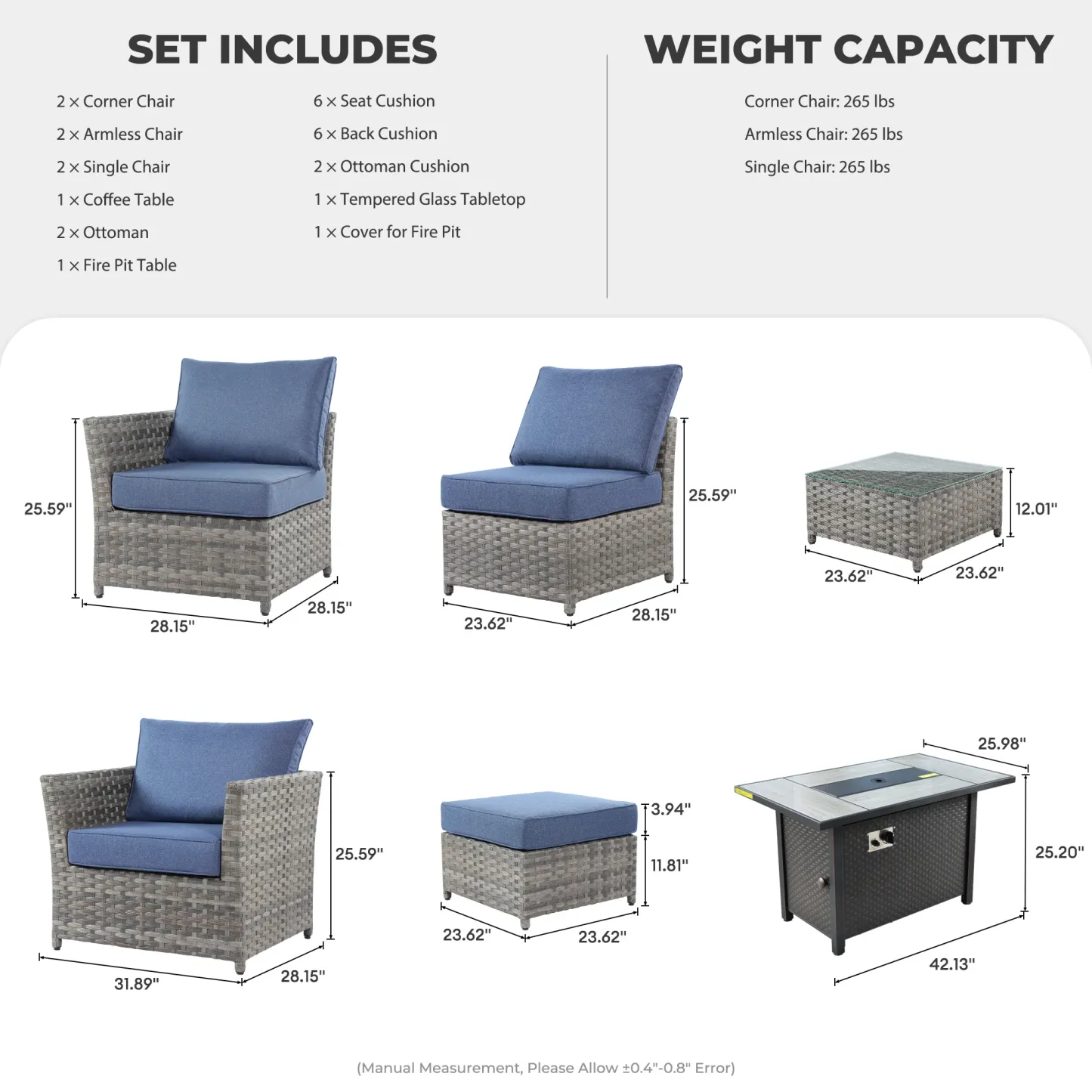 OVIOS Patio Furniture Set 10-Piece include 42"Fire Pit Table,New Rimaru Series