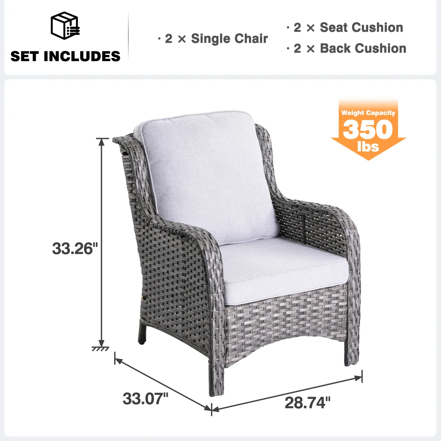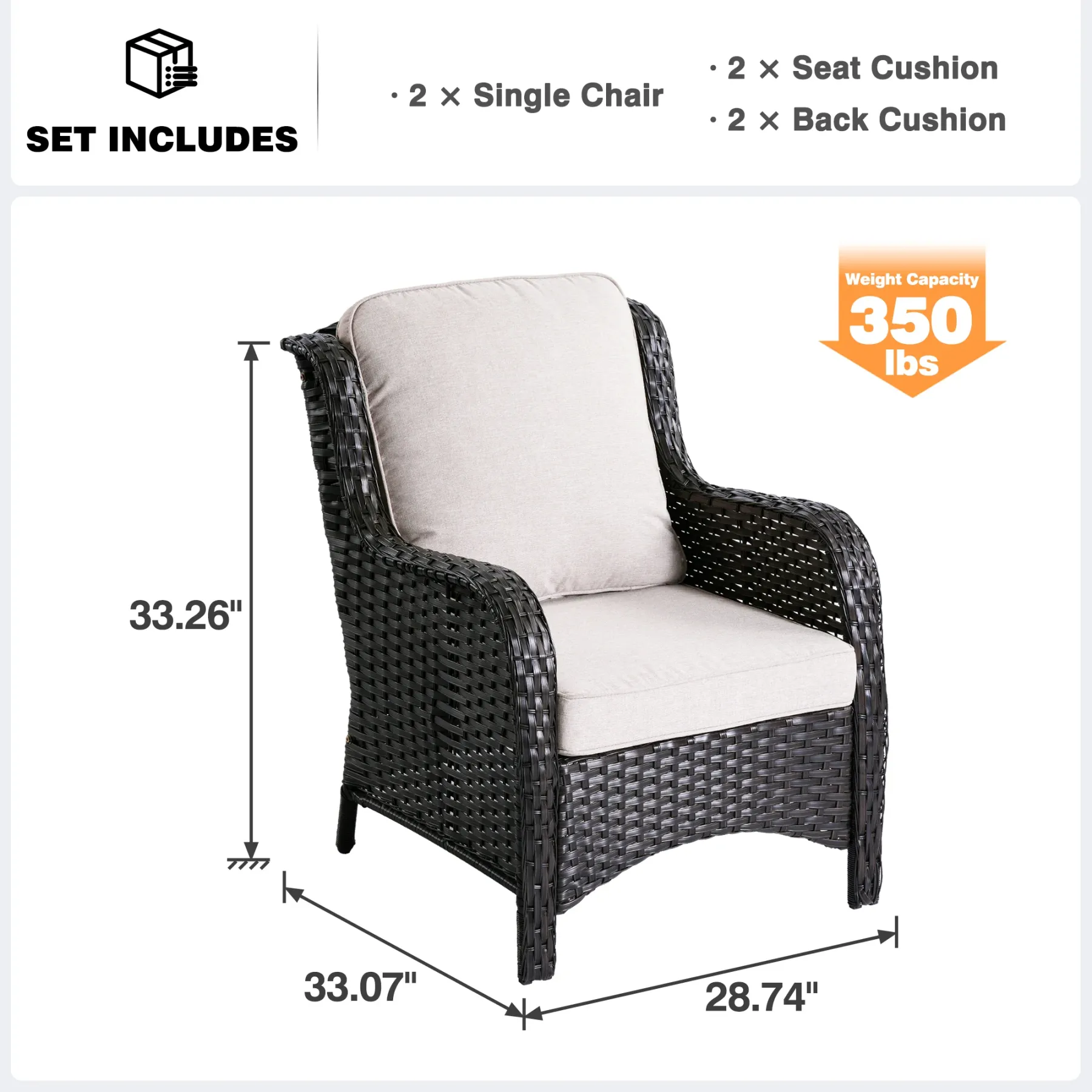 OVIOS Patio Chairs 2-Piece Kenard Curved Handrest