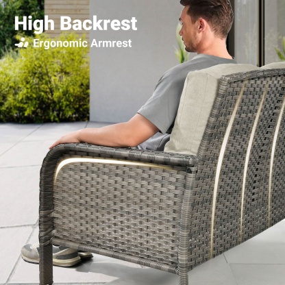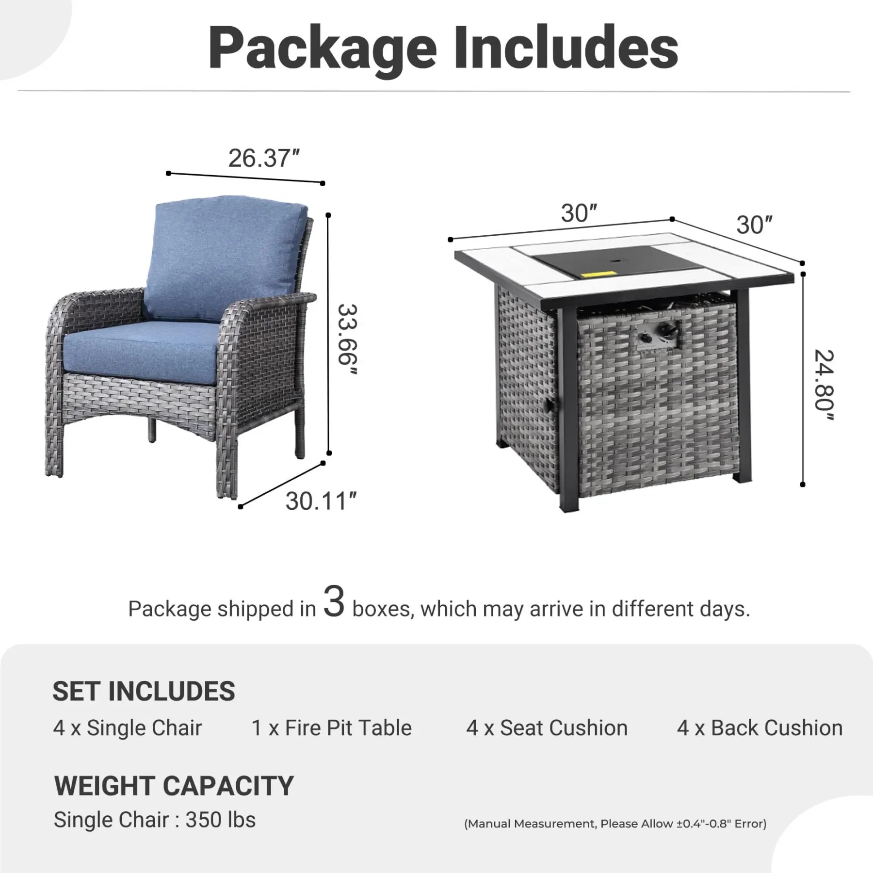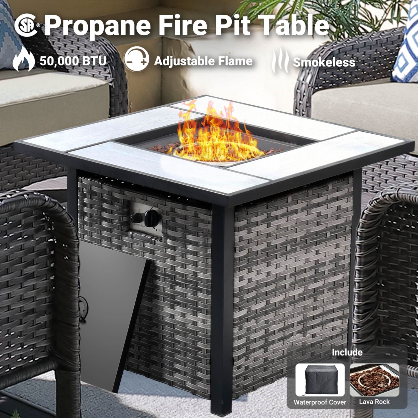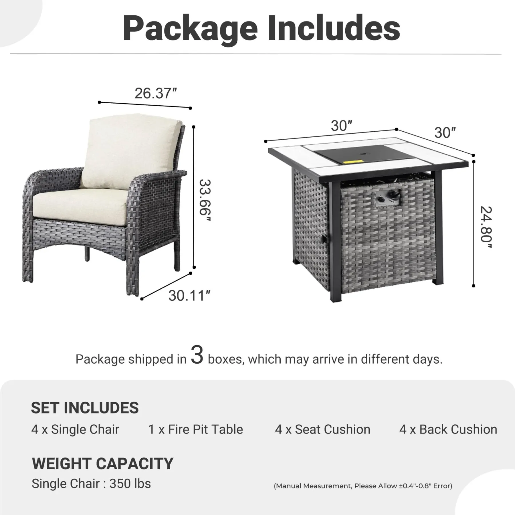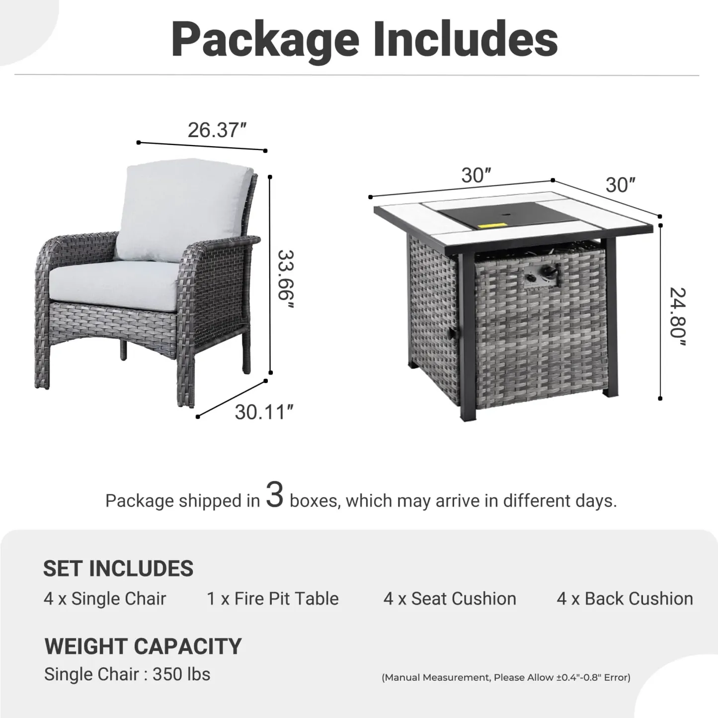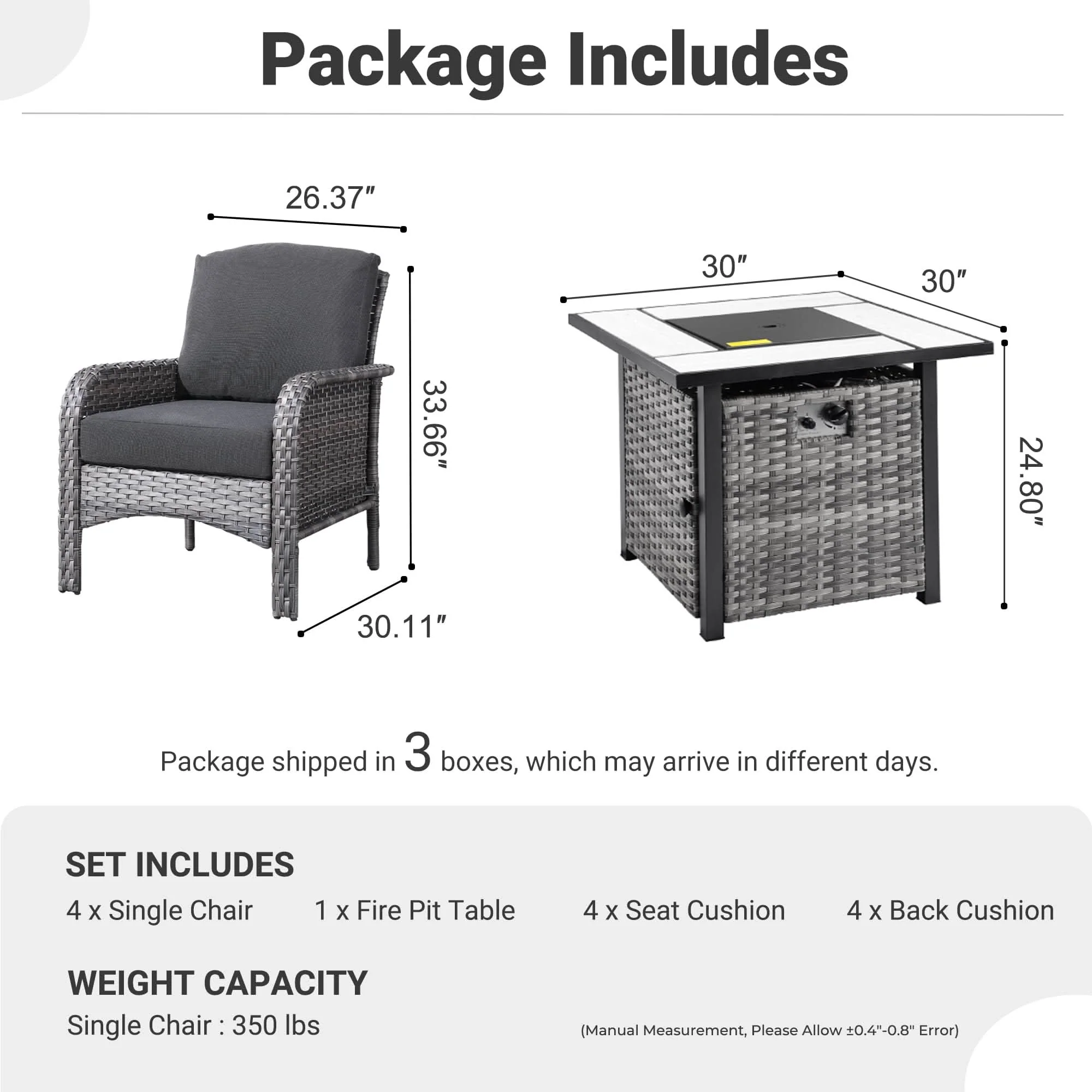 OVIOS 5-Piece Patio Set with Fire Pit Table,All Weather Grey Wicker Chairs & Cushions