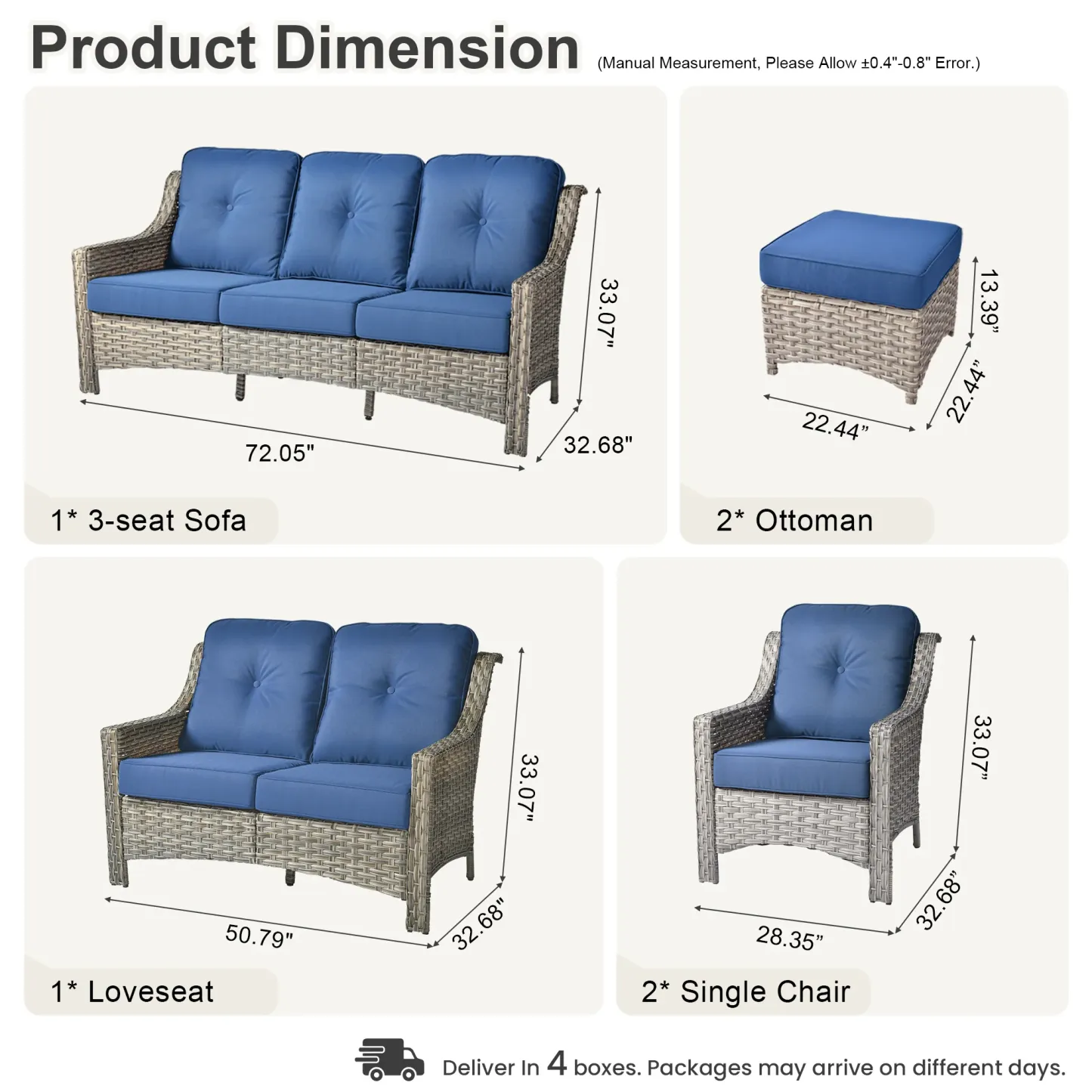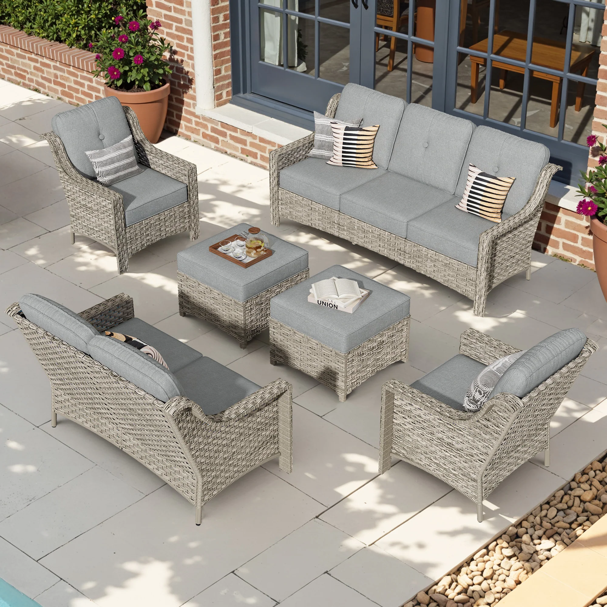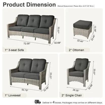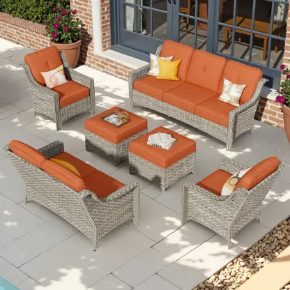 Ovios 6 Pieces Patio Furniture Set, Outdoor Sofa Couch with Ottomans