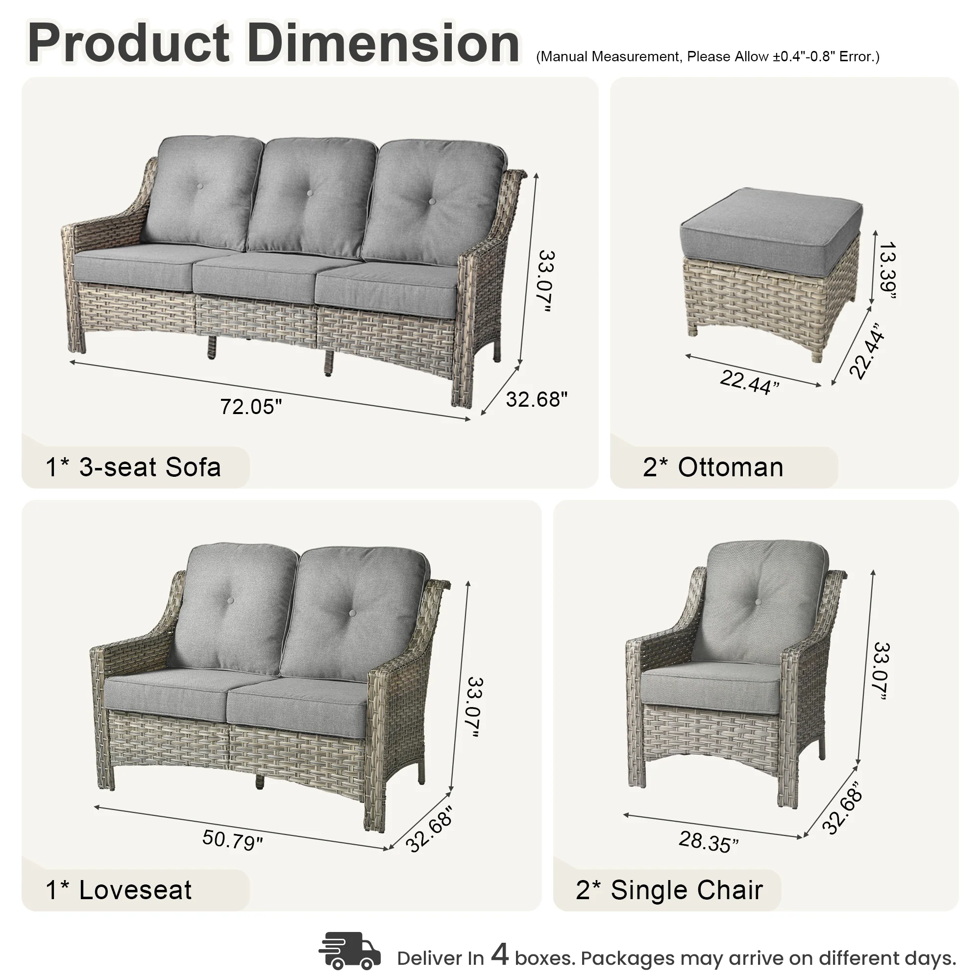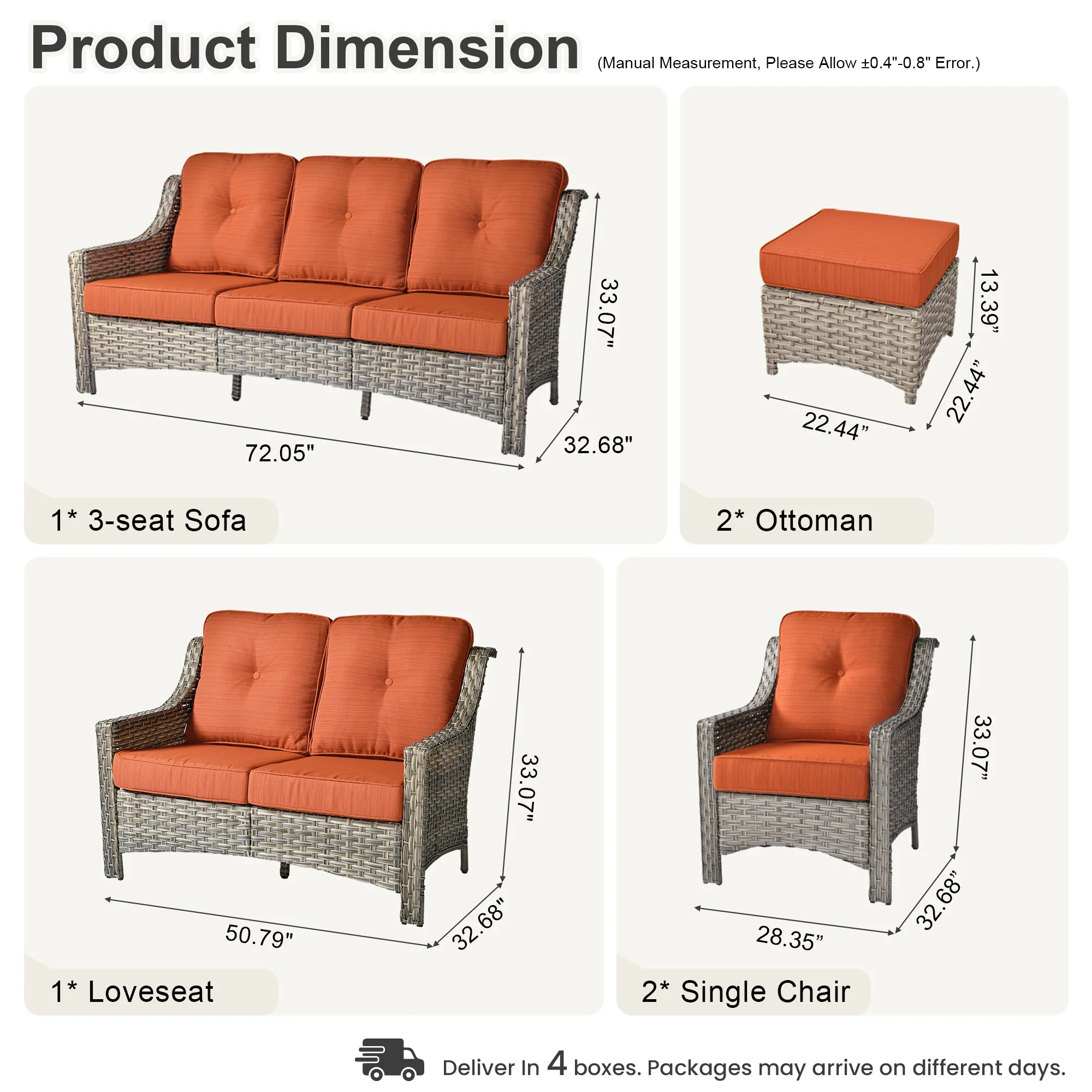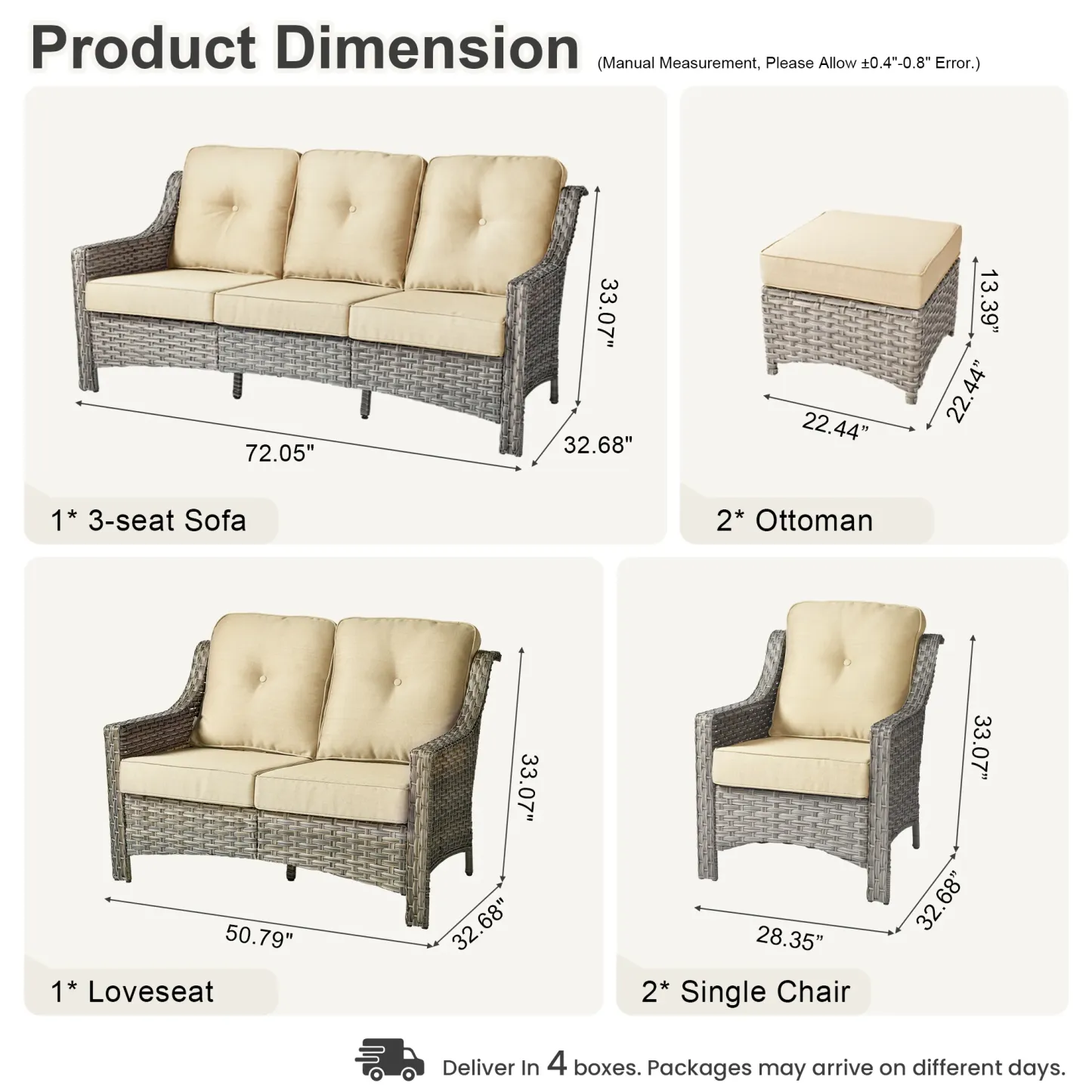 Ovios 6 Pieces Patio Furniture Set, Outdoor Sofa Couch with Ottomans