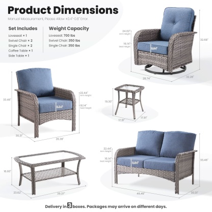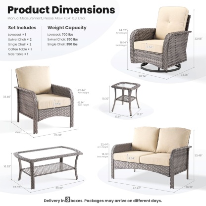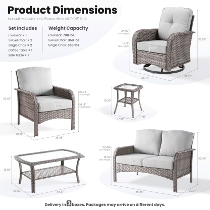 OVIOS 7 Pieces Patio Furniture Set, Outdoor Wicker Sofa with Swivel Chairs, Coffee Table
