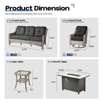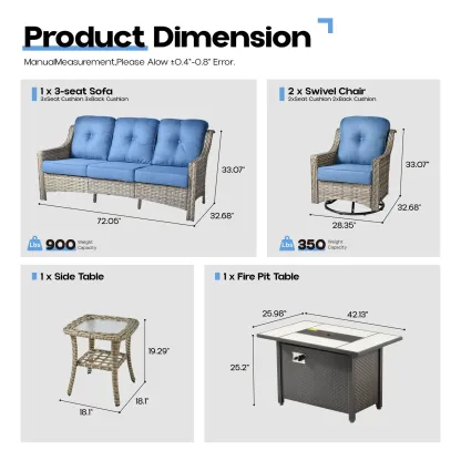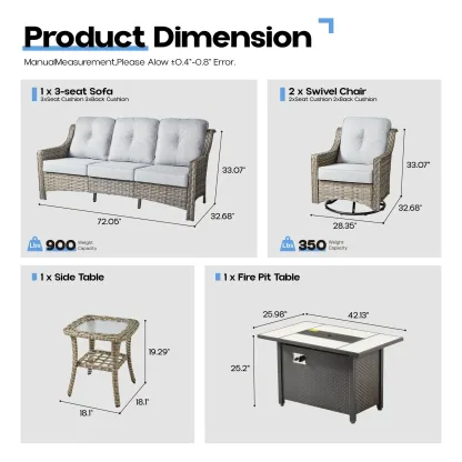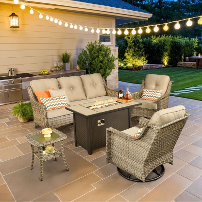 Ovios Outdoor 5 Pieces Coversation Set with 42" Fire Pit Table