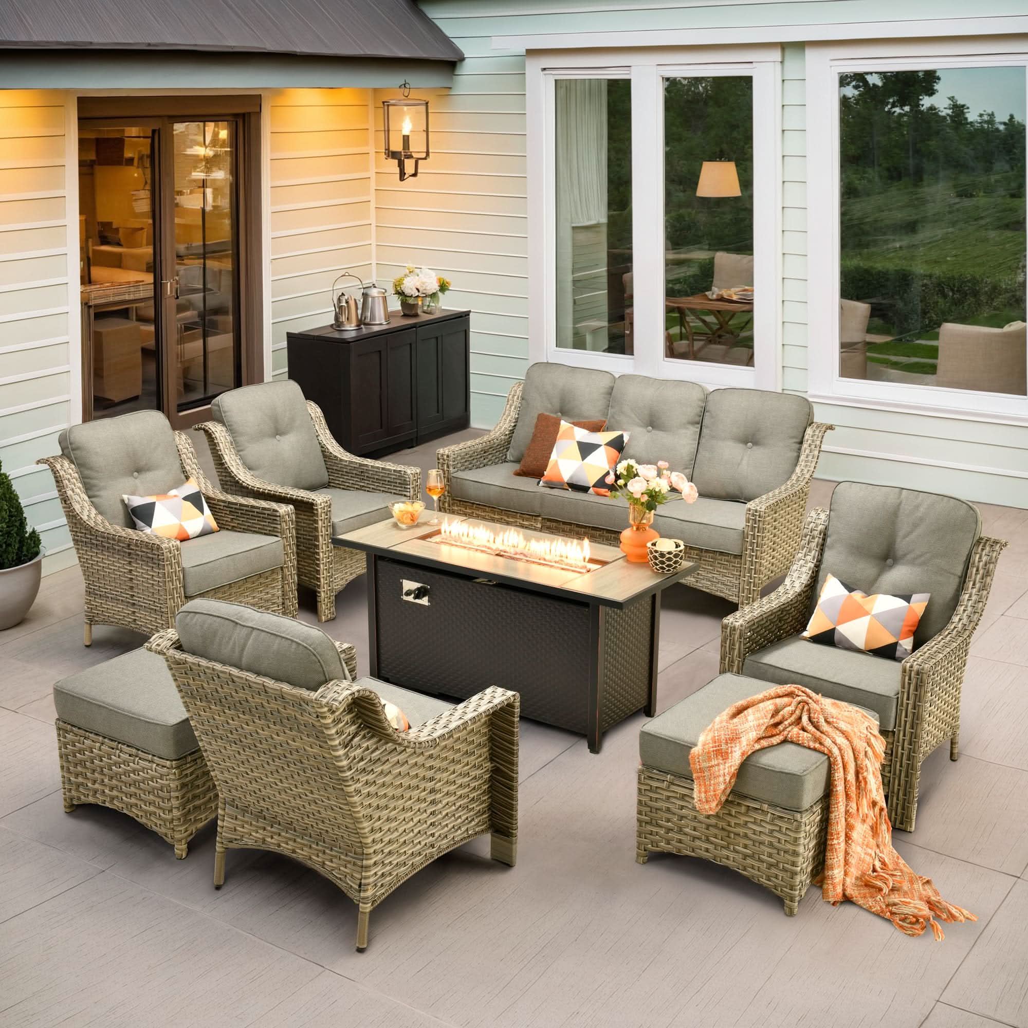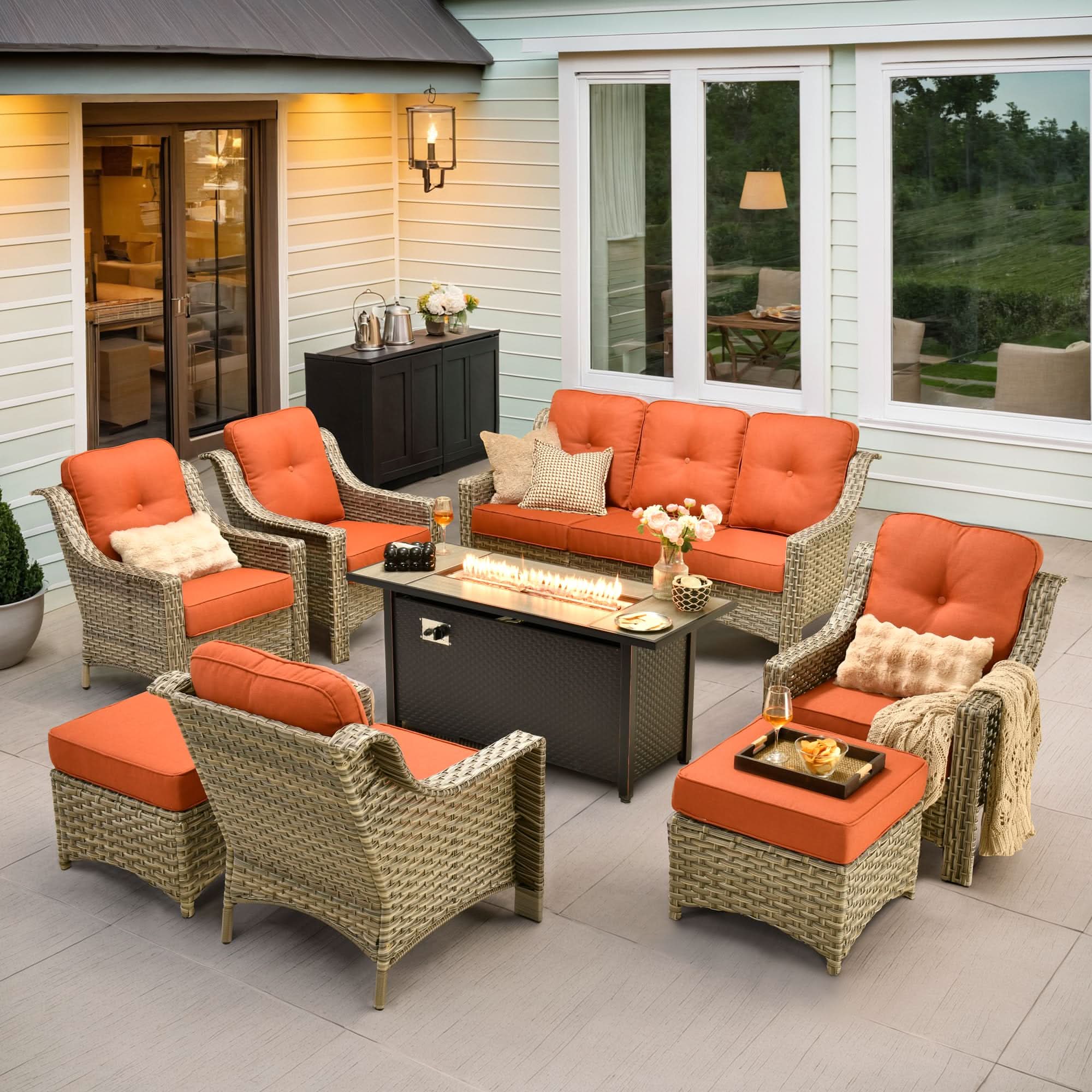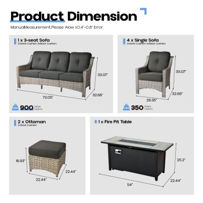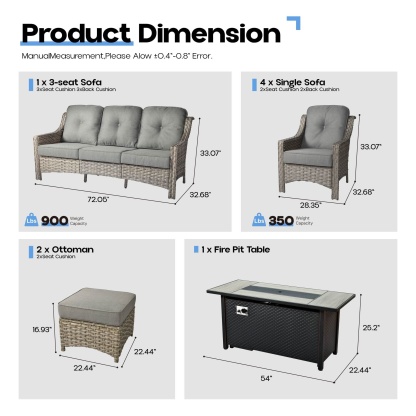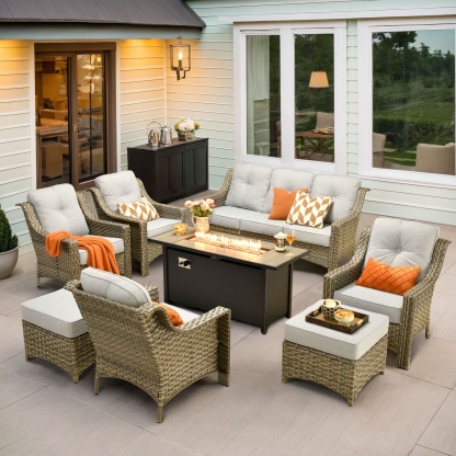 Ovios Outdoor 8 Pieces Coversation Set with 54" Fire Pit Table