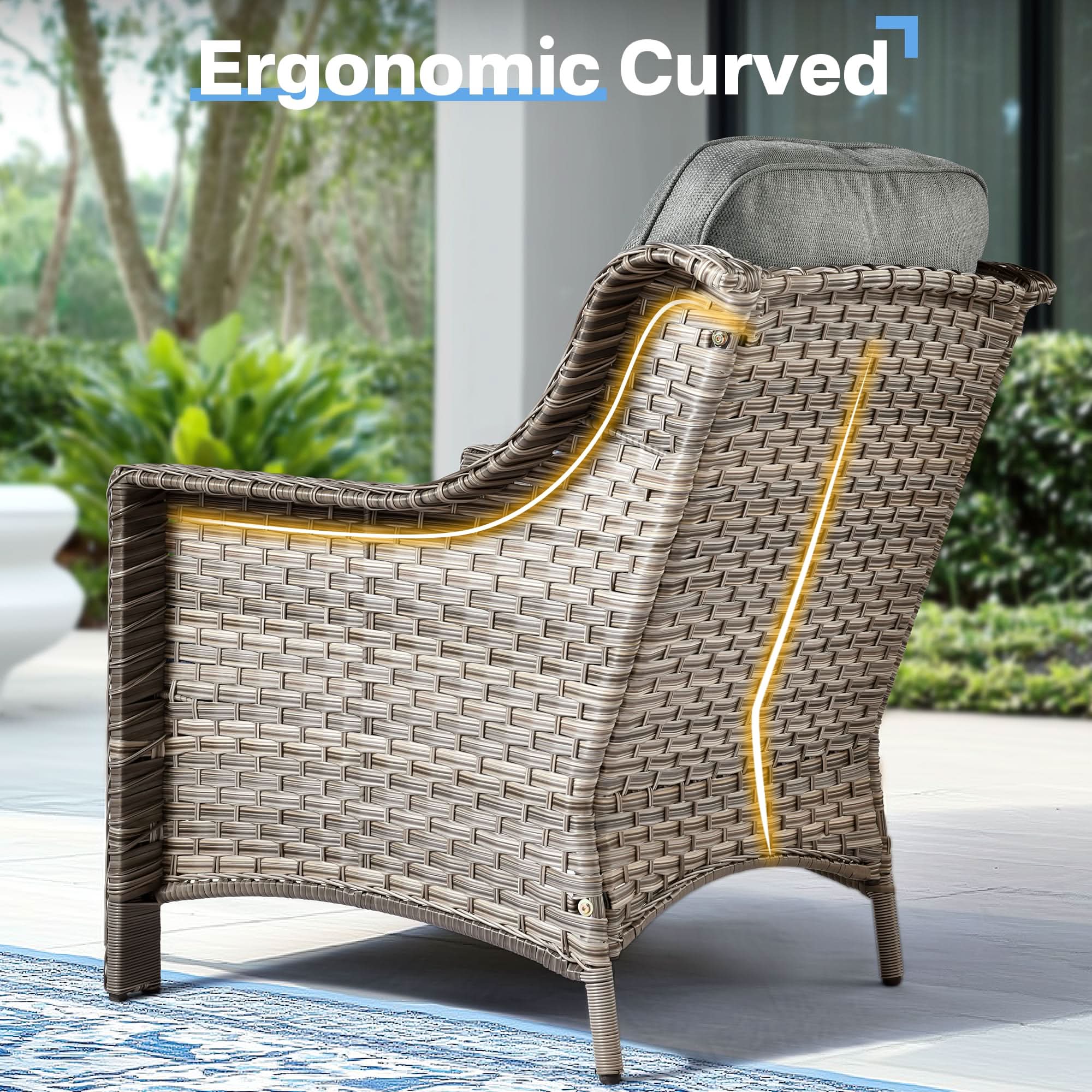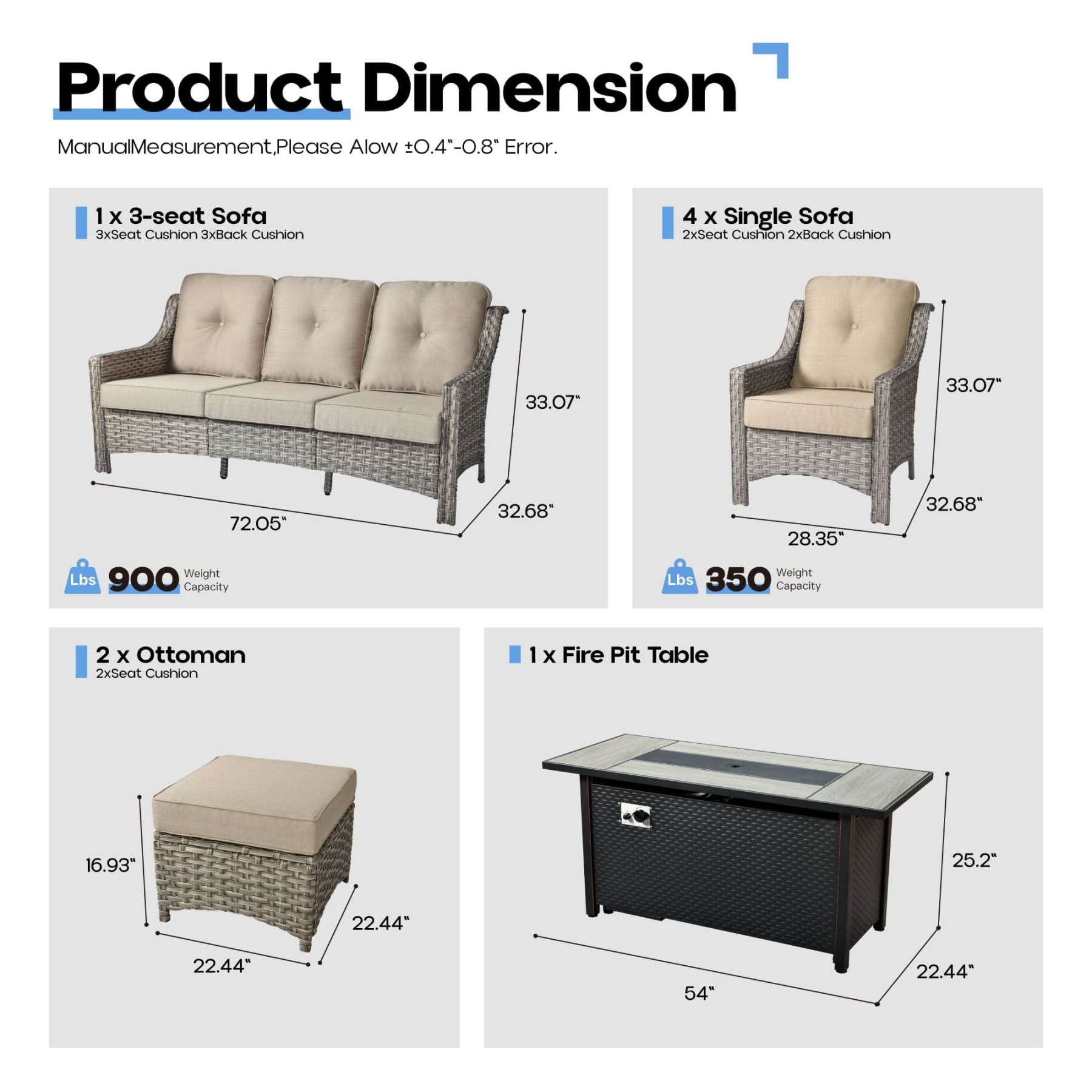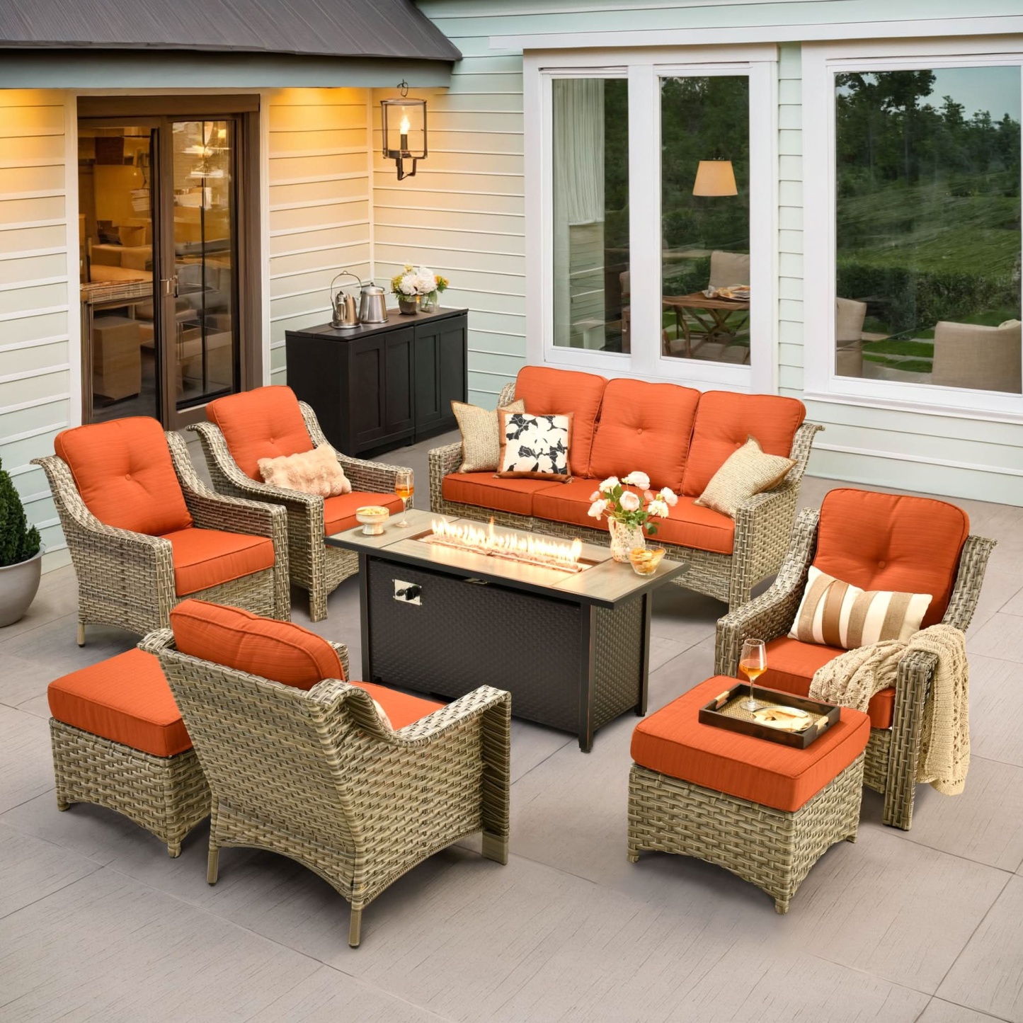 Ovios Outdoor 8 Pieces Coversation Set with 54" Fire Pit Table