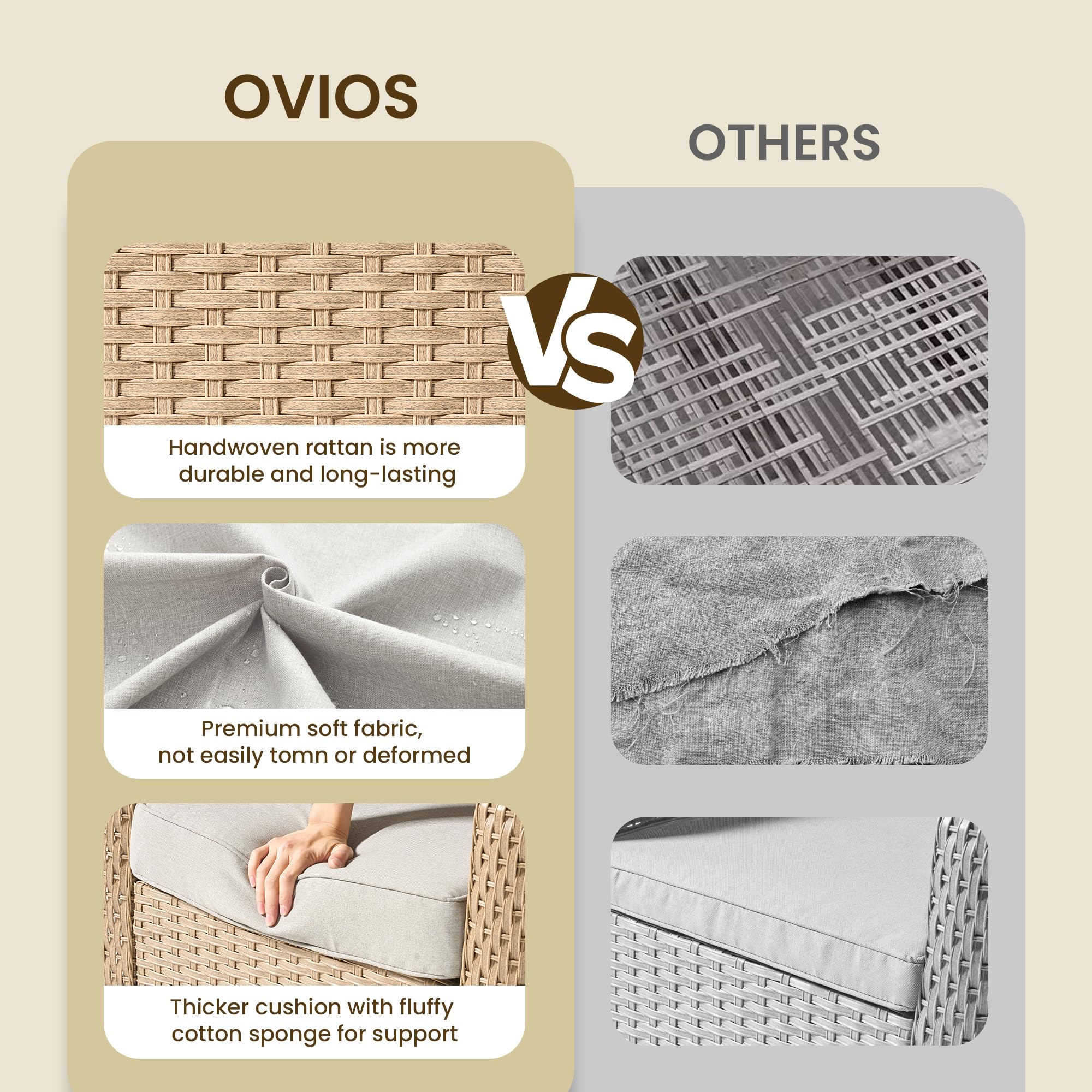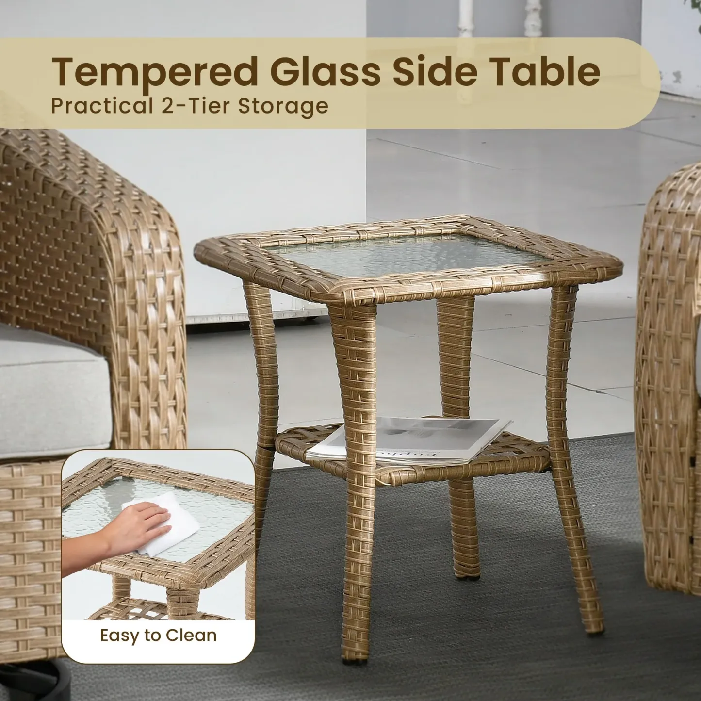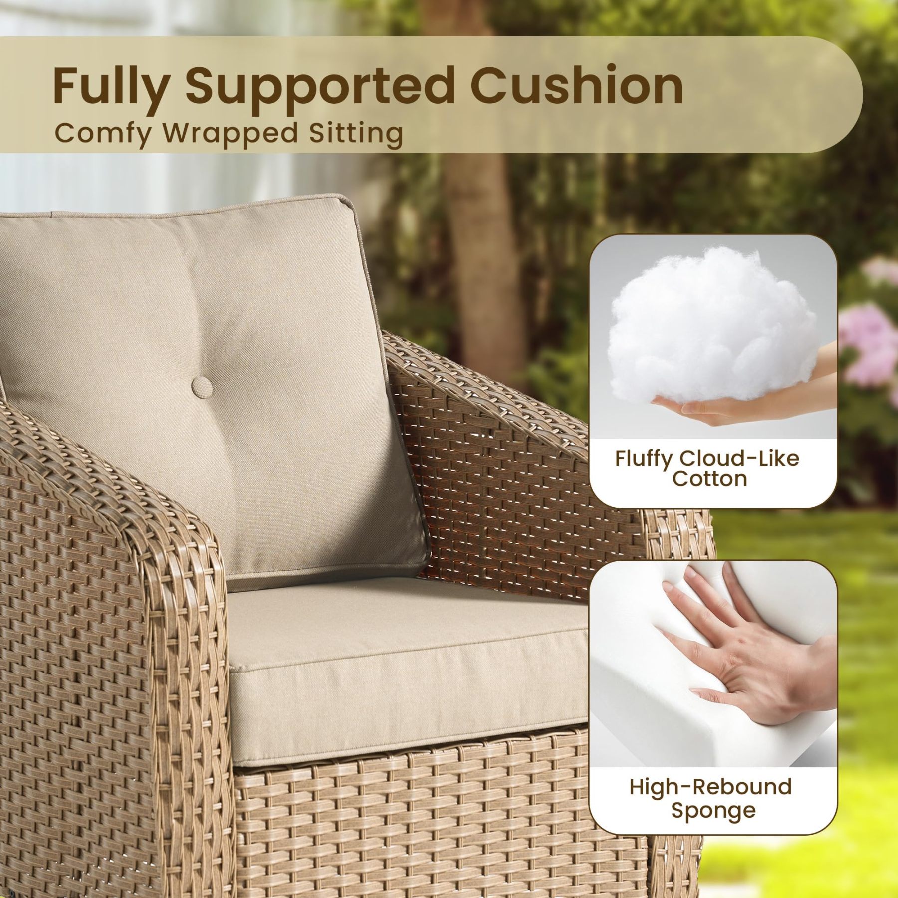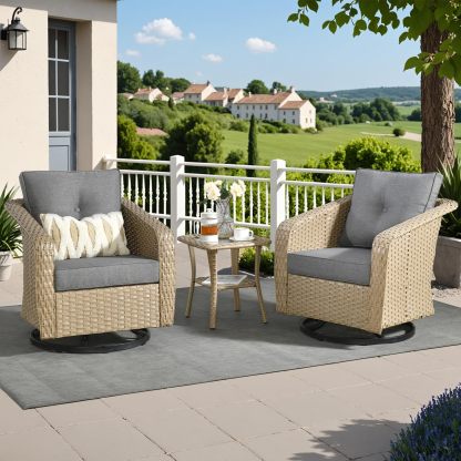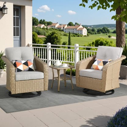 OVIOS 3 Pieces Patio Glider Chair Set, Outdoor Rocking Chairs of 2